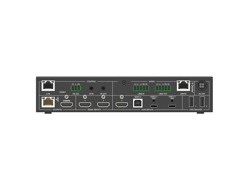 输入:2x USB-C, 3x HDMI, 1x 模拟音频, 1x Dante® 2ch;